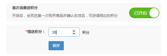 首次消費送積分開啟后,會員在第一次購買商品并確認收貨后,可獲得相應的積分。