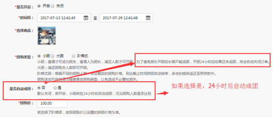 小團可以設置開團24小時后是否自動成團