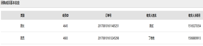 ⑥ 商家后臺訂單詳情加一個團購成員基本信息(僅小團有效)