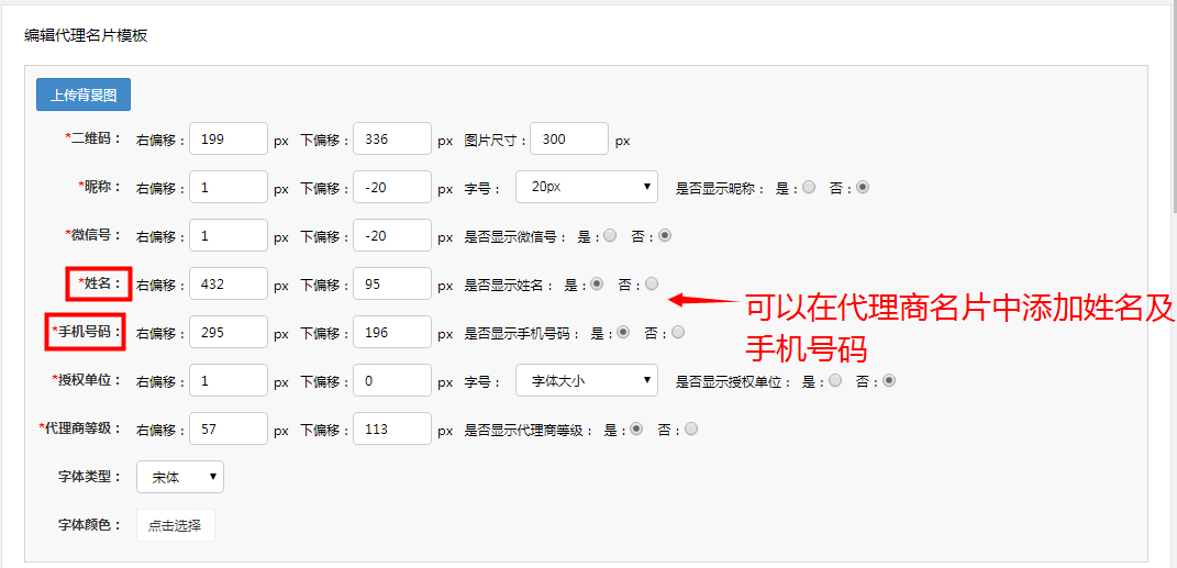 2.代理商名片新增加姓名、手機號、授權單位、代理商等級等設置項