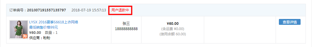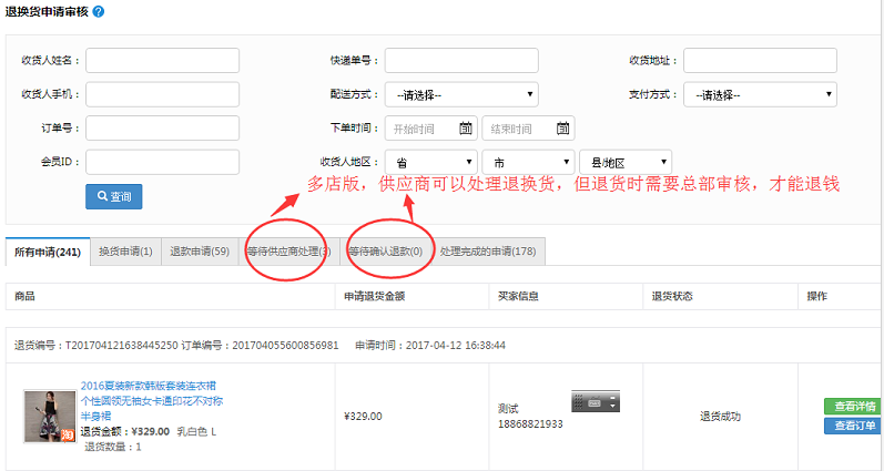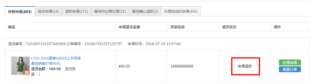 ·所有關(guān)于訂單的退換貨都可以在此查看,處理相關(guān)的售后問題。如下圖所示: