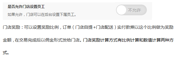 操作步驟: 總部后臺→商品:發(fā)布商品或者編輯商品時“傭金設(shè)置”模塊增加是否開啟“門店獎勵金”的配置項