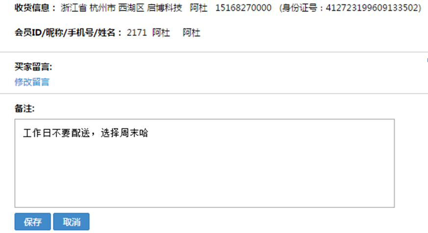 賣家備注信息欄對門店開放,門店可以在后臺看到總部對這筆訂單的備注信息
