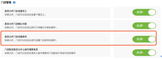 當門店設(shè)置中“是否允許門店設(shè)置庫存”關(guān)閉時,總部后臺仍可設(shè)置門店庫存