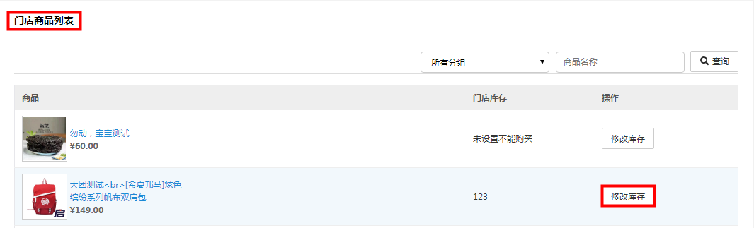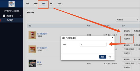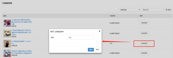 操作步驟: 總部后臺→會員→門店→門店管理:門店列表操作項增加查看“門店商品”的功能,且總部后臺商家可以修改門店商品的庫存。