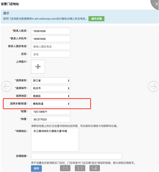 1、添加/編輯門店地址時精確到鄉(xiāng)鎮(zhèn)。