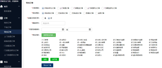 操作步驟: 門店后臺→訂單→導出訂單:可以導出不同時間段,不同類型的訂單,同時可根據(jù)需求選擇需要導出的內(nèi)容。