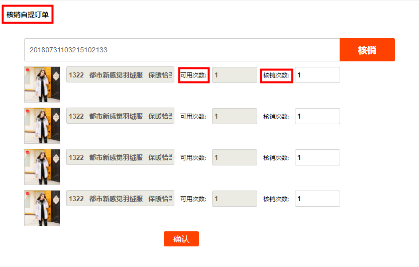操作步驟: 門店后臺→訂單→核銷自提訂單:門店后臺掃碼自提的訂單時,可以獲取到訂單中商品的信息。下圖中可用次數(shù)為訂單商品的數(shù)量,核銷次數(shù)(可以自己編輯,但不能大于可用次數(shù)),可用次數(shù)與商品名稱無法被編輯。
