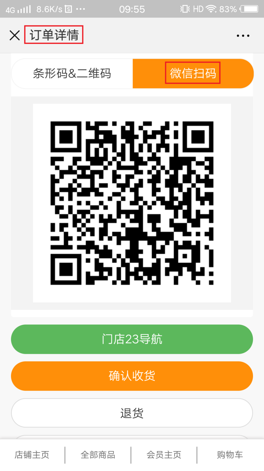 手機端訂單詳情中會出現(xiàn)微信可以識別的二維碼: