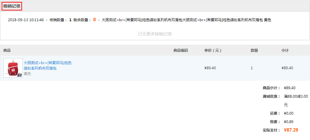 總部后臺訂單詳情中也會顯示相應核銷記錄: