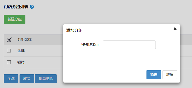 點(diǎn)擊“新建分組”進(jìn)行分組。返回到門店管理列表,可以進(jìn)行批量的門店分組設(shè)置。
