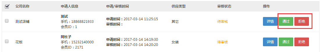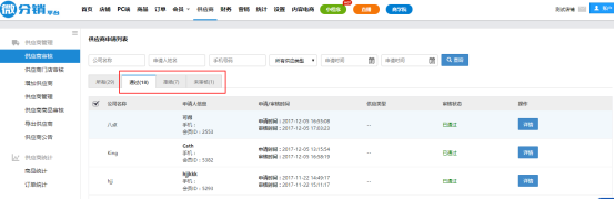 操作步驟: 總部后臺→供應商→供應商管理→供應商審核:審核列表增加審核狀態分類:通過、拒絕和未審核的狀態。