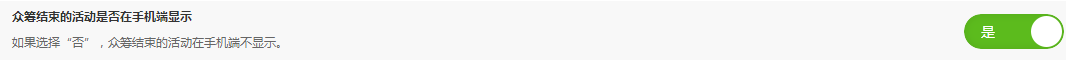 1.使用此功能注意:微眾籌禁止用于P2P金融及延伸相關行業、慈善募捐 、 博彩及彩票相關行業以及按國家規定需要前置審批及限制行業。 如發現違規,系統有權在未通知的情況下暫停提供眾籌等相關功能。 進入眾籌列表,可以設置是否要在手機端顯示