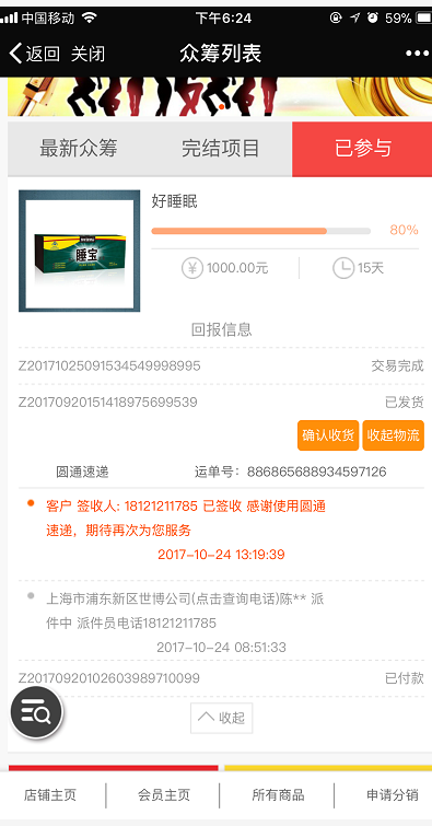③ 眾籌已發貨訂單物流狀態跟蹤