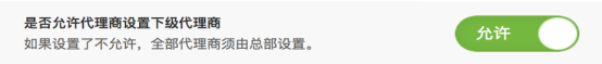 默認是允許狀態,關閉后。代理商不能設置下級代理商,只能由總部設置。