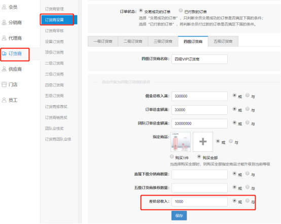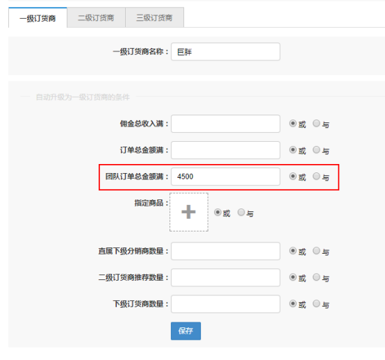 訂貨商升級(jí)條件增加團(tuán)隊(duì)訂單總金額