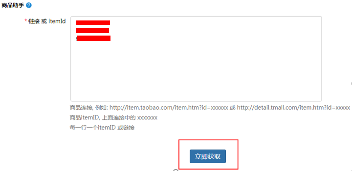 通過鏈接或者商品ID批量導入淘寶商品的功能