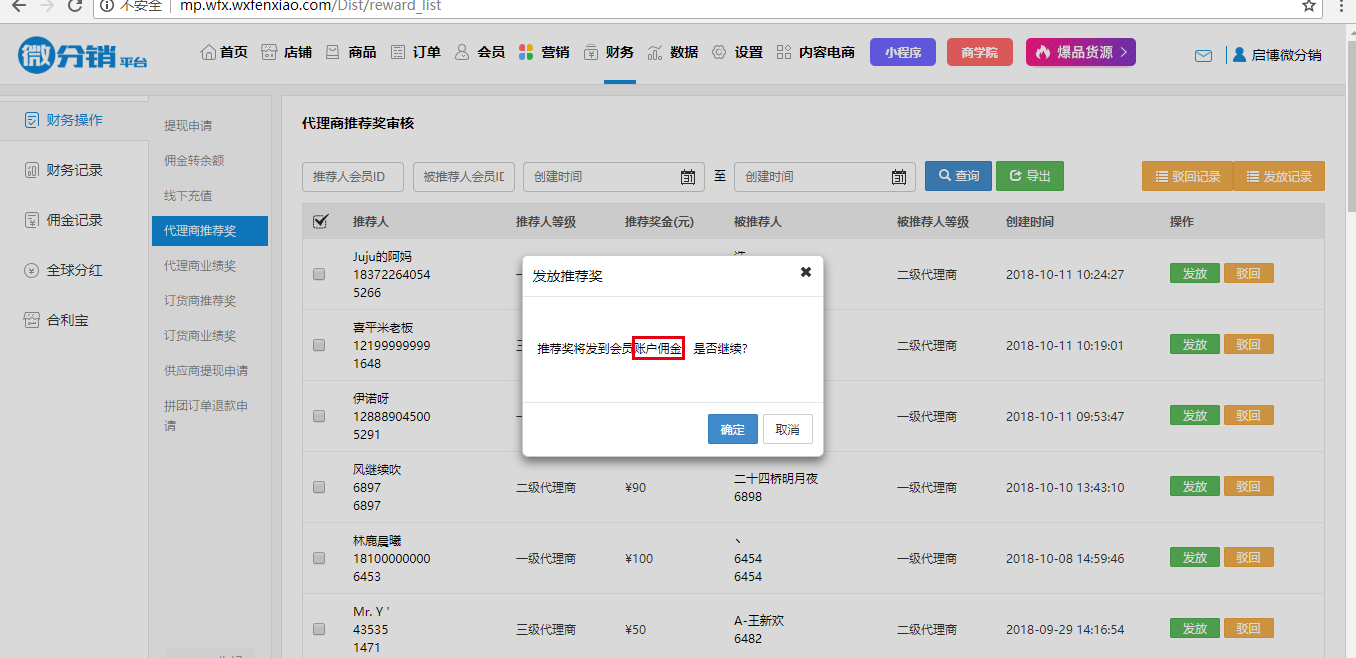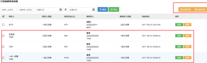 ? 訂貨商推薦獎審核:總部可查看推薦獎審核列表,可導出,可操作對其發放/駁回,且可查看發放記錄和駁回記錄。