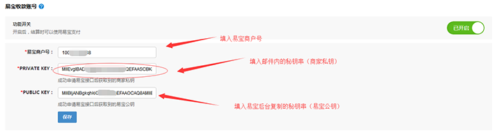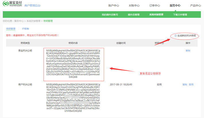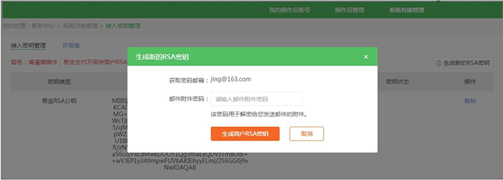 2.生成商家私鑰,記錄易寶公鑰