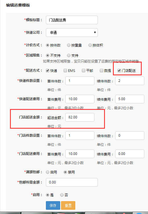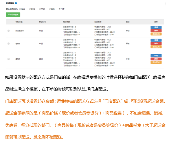 運費模板可以設置默認的配送方式,所有的運費模板都可以在此處進行查看、修改、添加與刪除。