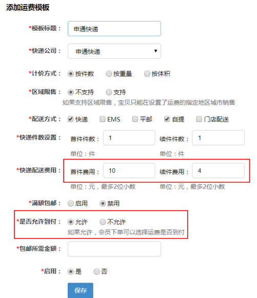 【新增】運費模板可以設置運費是否到付