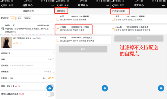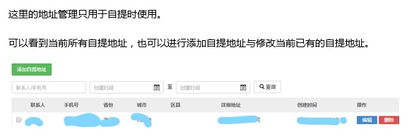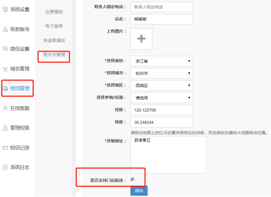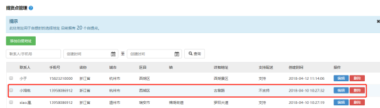 自提地址可以設置是否支持配送。選擇不支持時,下單選擇門店配送時不顯示此地址