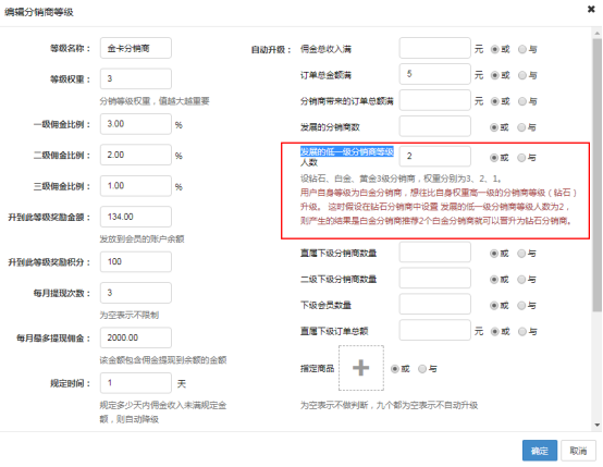 分銷商自動升級增加“發展的低一級分銷商等級”條件