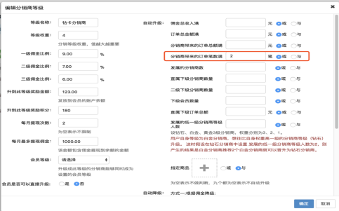 分銷商等級增加分銷商帶來的訂單筆數自動升級條件