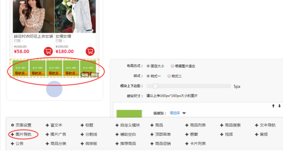 五、圖片導(dǎo)航 點擊添加“圖片導(dǎo)航”。如下圖所示: