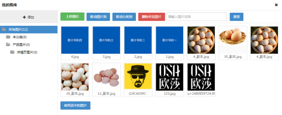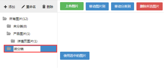 上圖就是“我的圖庫”界面,下面就“我的圖庫”做詳細的介紹。 首先來看左邊,這里可以管理圖片的分類,有利于用戶對圖片的管理。點擊“添加”按鈕進行添加分類文件夾、文件夾重命名、刪除的相關(guān)操作。如圖三所示