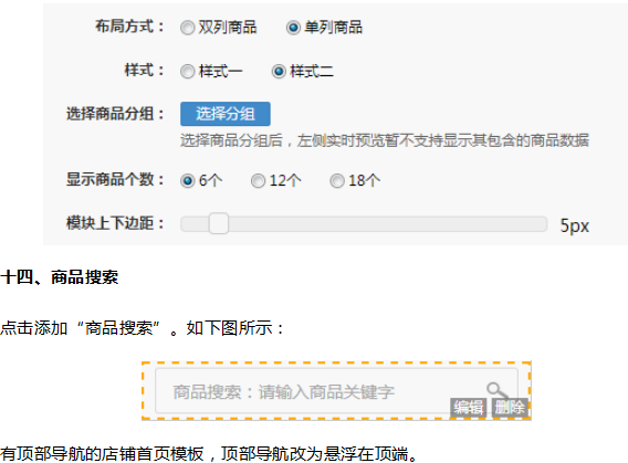 備注:模板名稱37、38、39沒這功能,因為這三個模板自帶“商品搜索”模塊的功能。