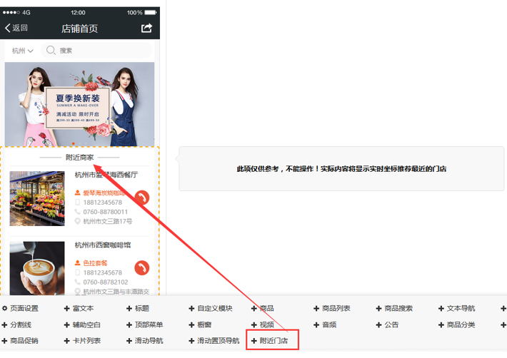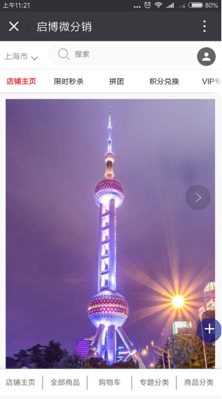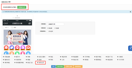 ③進入店鋪首頁會根據(jù)定位信息,顯示對應(yīng)城市主頁內(nèi)容,手動切換城市,如有該城市主頁,城市主頁也會隨之改變。商家可選擇已編輯的城市主頁設(shè)置為默認主頁,當會員進入到商城時,獲取到該會員當前所在的城市沒有設(shè)置城市主頁時,會顯示默認的主頁。 默認主頁只能設(shè)置一個。