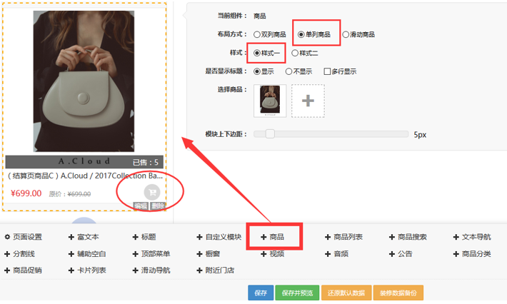 【優(yōu)化】首頁裝修添加商品模塊時 ,客戶只有一個產(chǎn)品(單列商品),選擇的樣式一時,商品框添加加入購物車按鈕