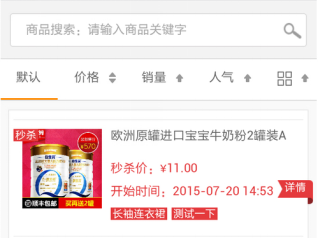 同時,商品列表中對參與秒殺的商品打上”秒殺“的標記。在秒殺商品詳情頁中,如果活動還未開始,則顯示活動還未開始,并顯示開始倒計時。如果此活動已開始,則顯示結束時的倒計時。