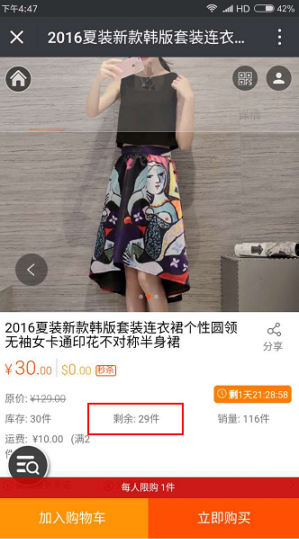 ·營銷活動的商品詳情頁面顯示活動的庫存