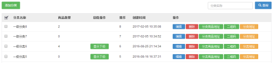 可以添加商品分類,可以對(duì)商品進(jìn)行編輯、刪除,還可以根據(jù)分類名稱查詢商品。