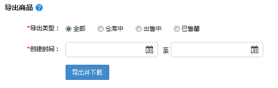 導出商品可選擇全部、倉庫中、出售中、已售磬四種狀態。設置好創建時間,點擊“導出并下載”按鈕即可導出。 其次,來看一下列表,如下圖