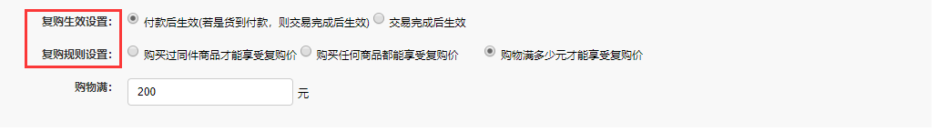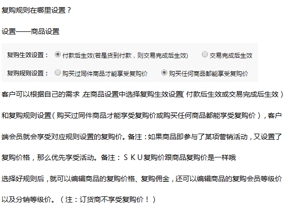 復購生效設置項:總部后臺→設置→系統設置→店鋪信息→商品設置
