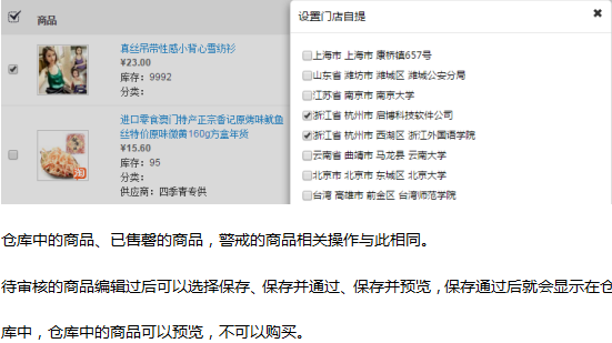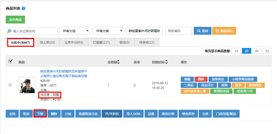 出售中的商品是對整個店鋪已上架的商品的管理。請對照電腦頁面,從上到下依次講解 首先:如下圖
