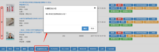 商品列表增加批量取消分組功能