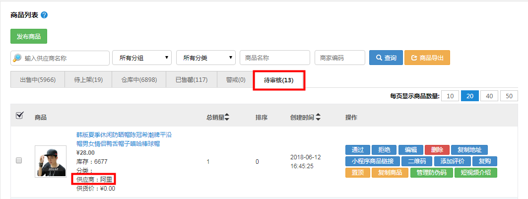 總部將供應商的商品下架后,直接到待審核里