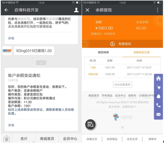 操作步驟: 總部后臺→營銷→積分營銷→積分兌換紅包:添加/編輯紅包時,發放形式選擇“賬戶余額”時,發放成功后,會員會收到余額變動通知,前提是要先配置“余額變動通知”消息模板。