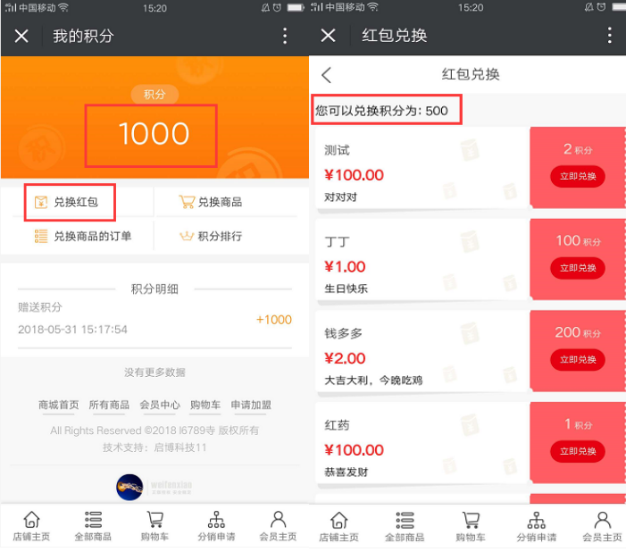 積分兌換紅包,可以設置每天可兌換積分百分比