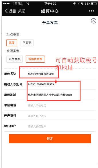 ①紙質發票:選擇公司時,增加填寫“納稅人識別號”,當填寫發票抬頭后,會自動獲取該公司的“納稅人識別號”;