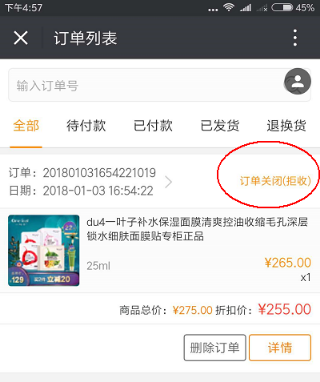 操作步驟: 商家后臺→訂單:貨到付款的訂單,商家發貨后,訂單列表操作項增加“拒收”按鈕(買家下單選擇貨到付款,商家發貨后,當買家收貨時拒收,商家在后臺訂單列表操作項可以標記“拒收”),點擊“拒收”按鈕,訂單狀態變為訂單關閉(拒收),商品庫存返還。