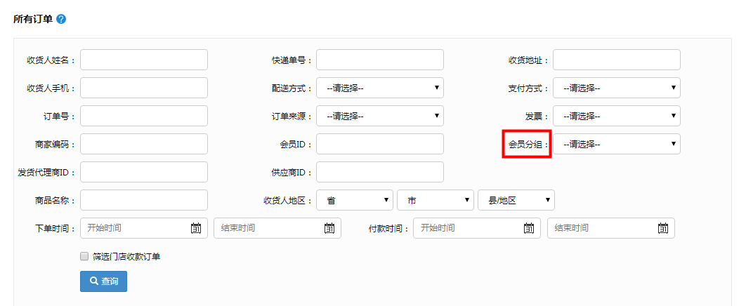 后臺訂單列表和導出訂單可以根據會員分組進行篩選
