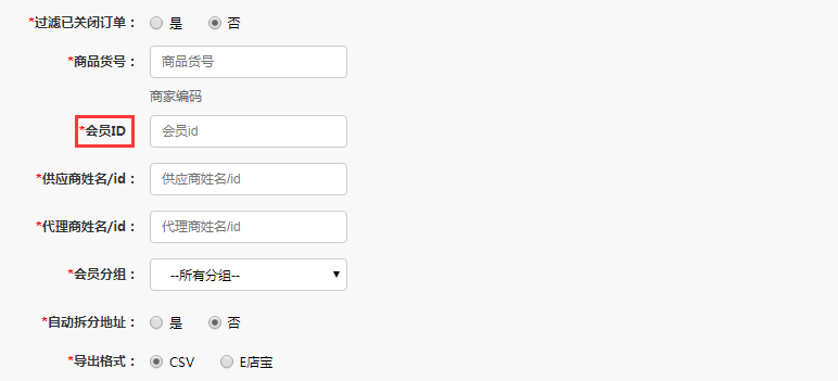 導出訂單增加會員ID的篩選項,可以實現只導出某個會員的訂單