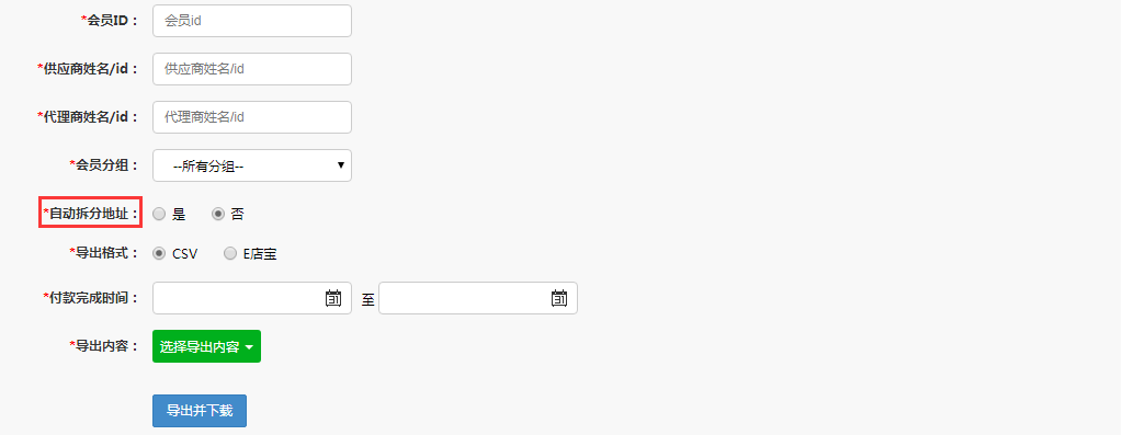 導出訂單,可以設置收貨地址是否自動拆分省市區