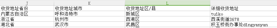 選擇“自動拆分地址”后,導出訂單收貨地址顯示如下: