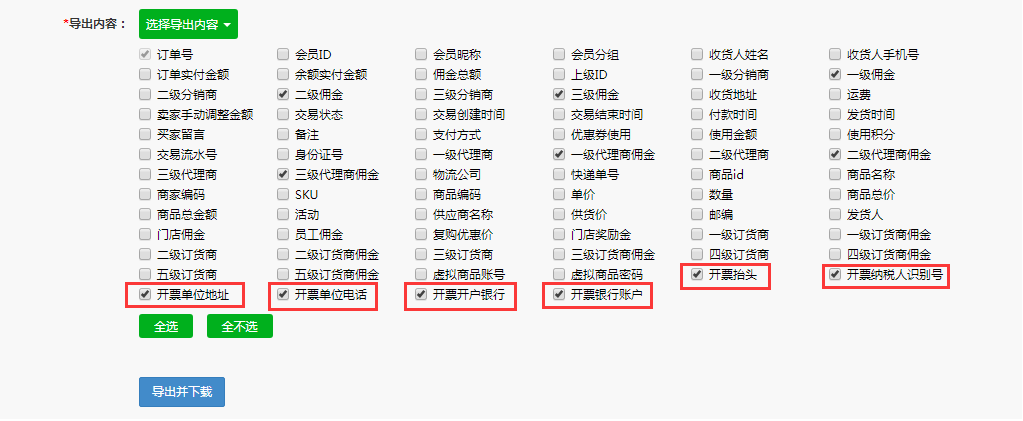 訂單導出增加發票信息內容,方便商家把開票信息導入系統